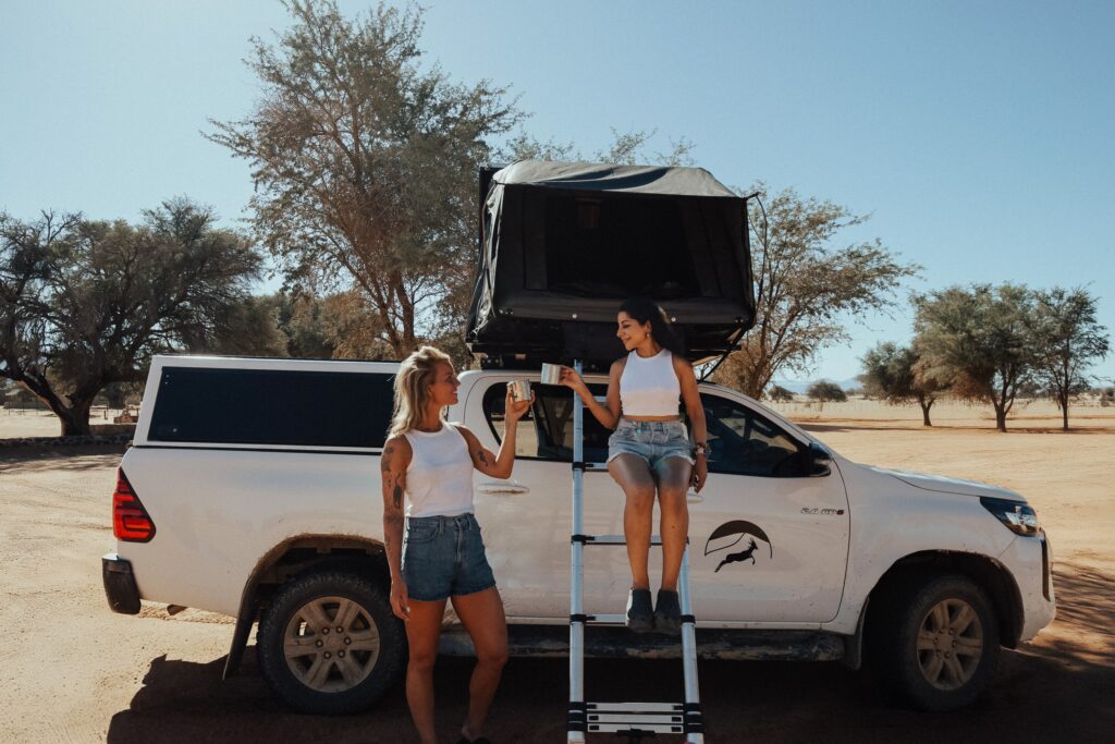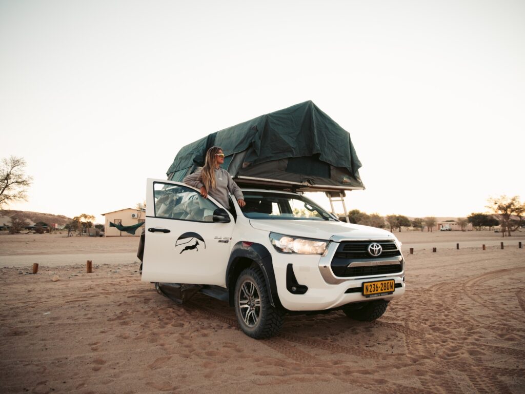 When it comes to reliability and versatility, nothing beats the Toyota Hilux. At Kalahari Car Hire, we offer a wide range of 4×4 pickup rental cars and campers, from brand-new powerful models to slightly older, budget-friendly vehicles. All well-maintained and individually equipped to offer a relaxed ride on endless tar roads or perform on tough 4×4 routes.
